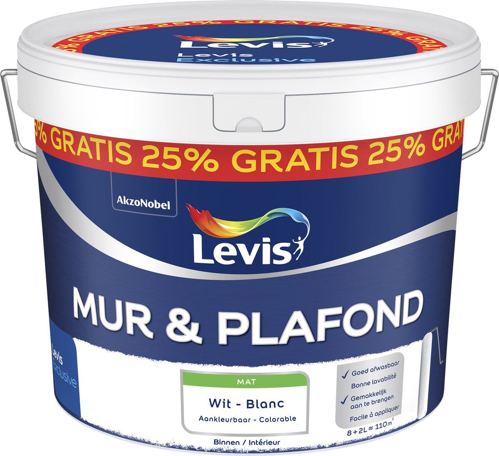 Witte Matte muurverf op water basis voor binnen en buiten. Verf spat niet en is gemakkelijk aan te brengen zonder aanzetten. Goed afwasbaar, bestand tegen opglanzen, geurarm en geeft een mooi eindresultaat.