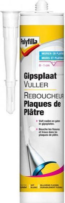 Polyfilla Gipsplaatvuller (Pasta) is geschikt voor het vullen en repareren van naden tussen gipsplaten (0-1 cm). Ook kunnen gipsplaatschroeven in wanden en plafonds worden gedekt. Deze pasta, die gebruiksklaar wordt geleverd, kan ook toegepast worden in vochtige ruimtes als de reparatie afgewerkt wordt met een vochtbestendige verf. Vezelversterkt. Vangt lichte ondergrondwerking op. Krimpt niet. Geen voegband nodig. Maximale diepte 1 cm. Bestaat ook in poedervorm.